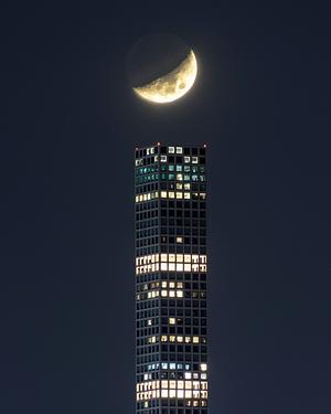 Crescent moon set over 432 Park Avenue
