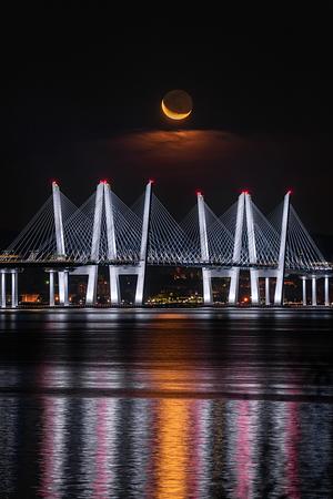 Waning crescent moonrise over the Tappan Zee Bridge